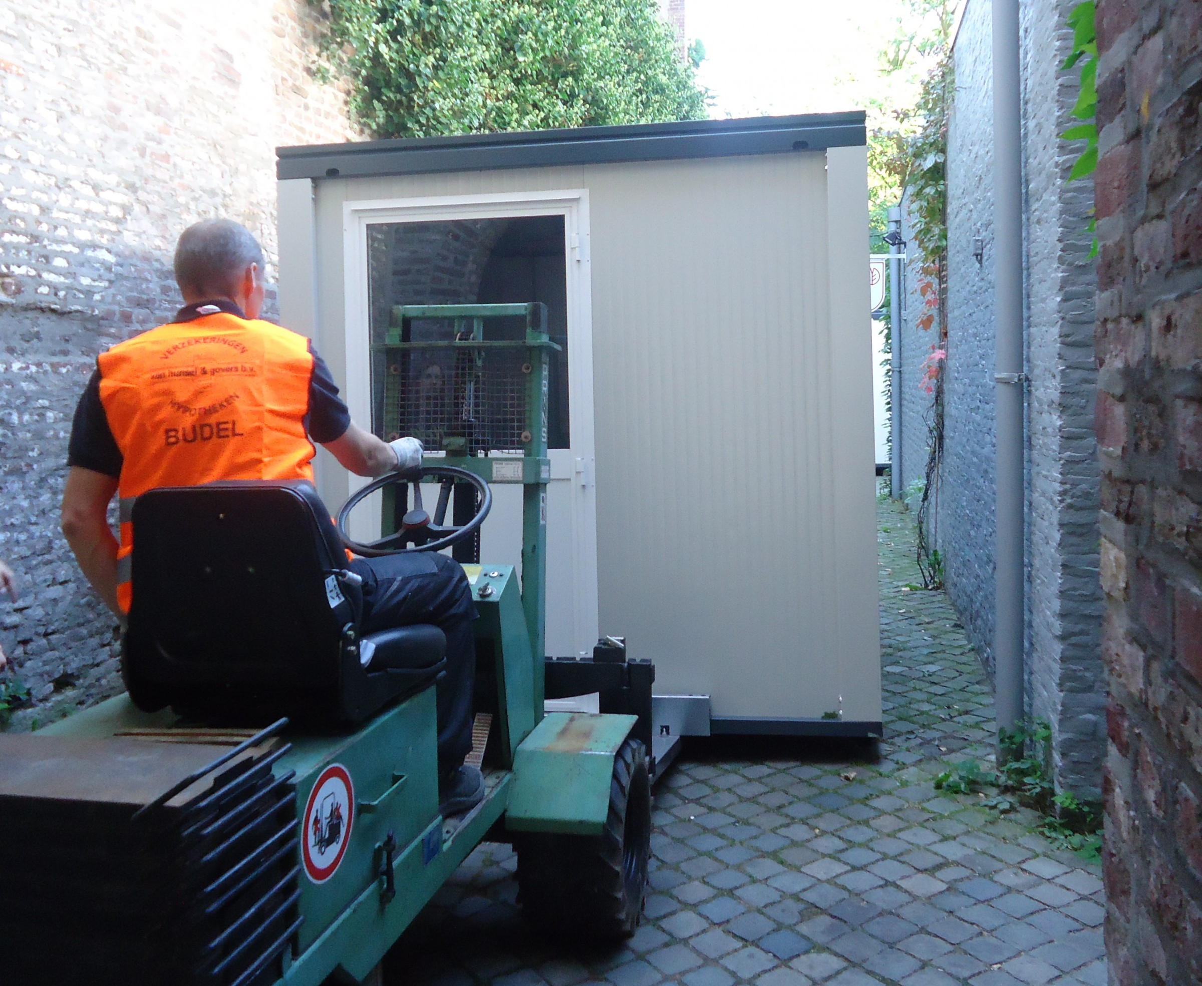 De containers kunnen afgehaald worden bij ons magazijn te Gastel.